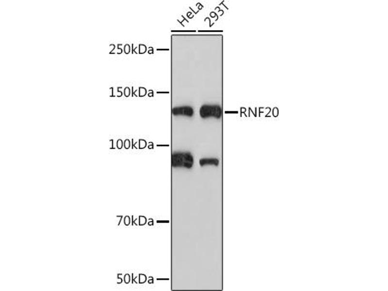 Der Kaninchen Monoklonal anti-RNF20 Antikörper (ABIN7270071) detektiert spezifisch RNF20 in WB.