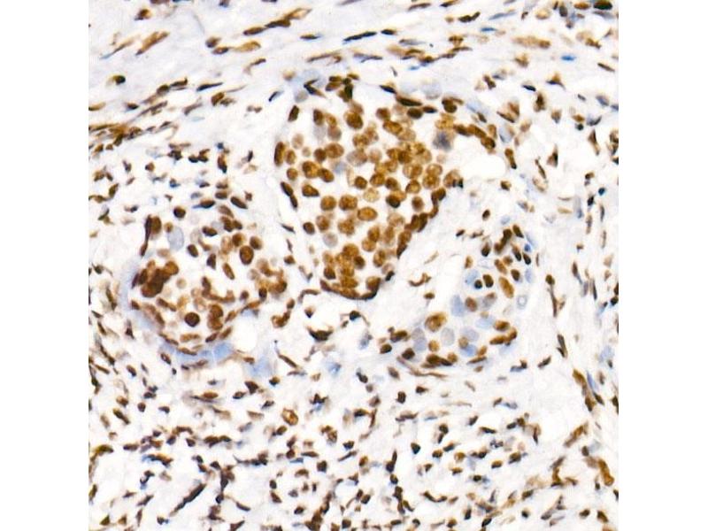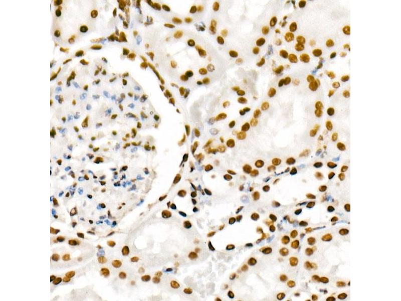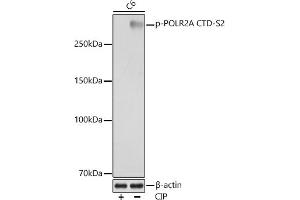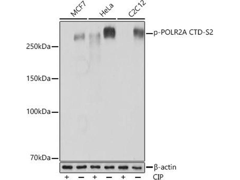 This gene encodes the largest subunit of RNA polymerase II, the polymerase responsible for synthesizing messenger RNA in eukaryotes. The product of this gene contains a carboxy terminal domain composed of heptapeptide repeats that are essential for polymerase activity. These repeats contain serine and threonine residues that are phosphorylated in actively transcribing RNA polymerase. In addition, this subunit, in combination with several other polymerase subunits, forms the DNA binding domain of the polymerase, a groove in which the DNA template is transcribed into RNA. [provided by RefSeq, Jul 2008],POLR2, POLRA, RPB1, RPBh1, RPO2, RPOL2, RpIILS, hRPB220, hsRPB1,DNA Damage & Repair,Epigenetics & Nuclear Signaling,Neurodegenerative Diseases,Neuroscience,Protein phosphorylation,POLR2A