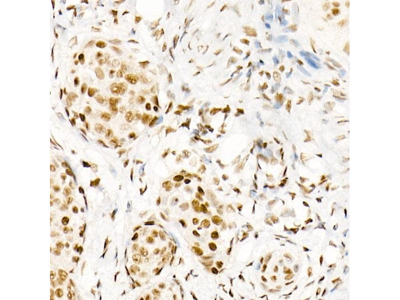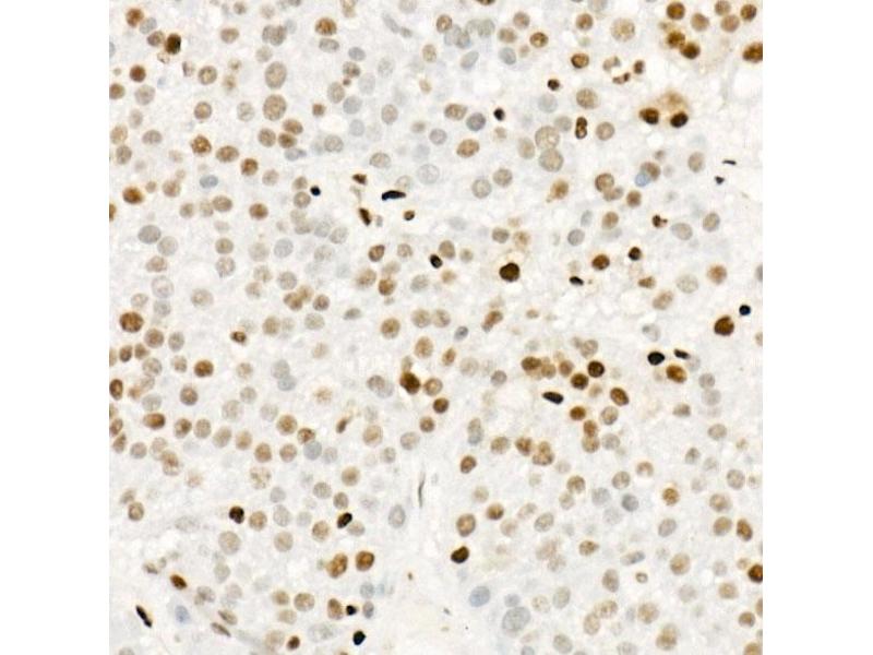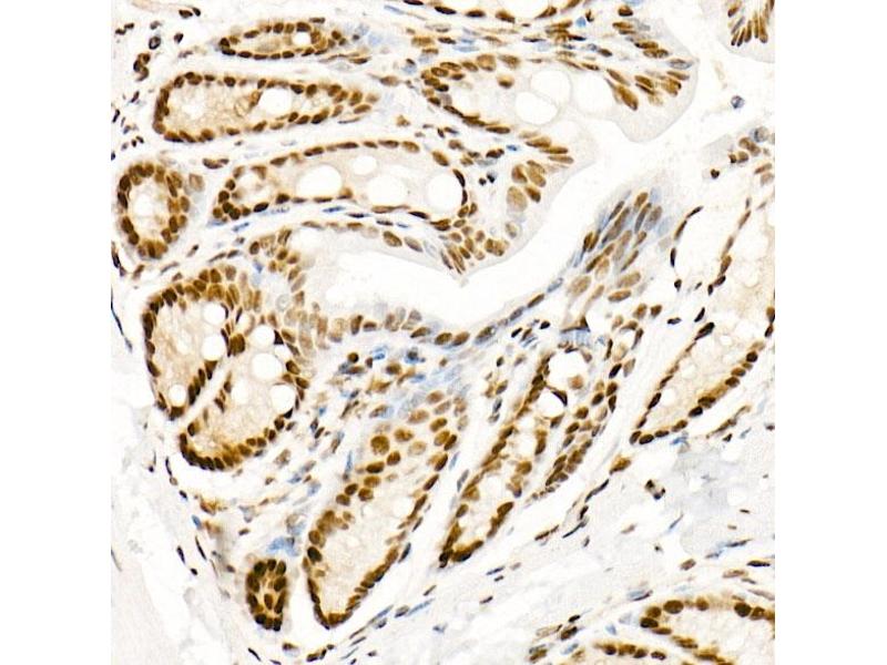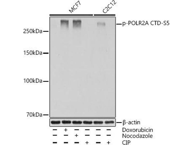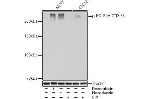 This gene encodes the largest subunit of RNA polymerase II, the polymerase responsible for synthesizing messenger RNA in eukaryotes. The product of this gene contains a carboxy terminal domain composed of heptapeptide repeats that are essential for polymerase activity. These repeats contain serine and threonine residues that are phosphorylated in actively transcribing RNA polymerase. In addition, this subunit, in combination with several other polymerase subunits, forms the DNA binding domain of the polymerase, a groove in which the DNA template is transcribed into RNA. [provided by RefSeq, Jul 2008],POLR2, POLRA, RPB1, RPBh1, RPO2, RPOL2, RpIILS, hRPB220, hsRPB1,DNA Damage & Repair,Epigenetics & Nuclear Signaling,Neurodegenerative Diseases,Neuroscience,Protein phosphorylation,POLR2A