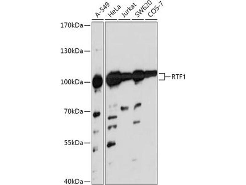 Der Kaninchen Polyklonal anti-RTF1 Antikörper (ABIN7270107) detektiert spezifisch RTF1 in WB.