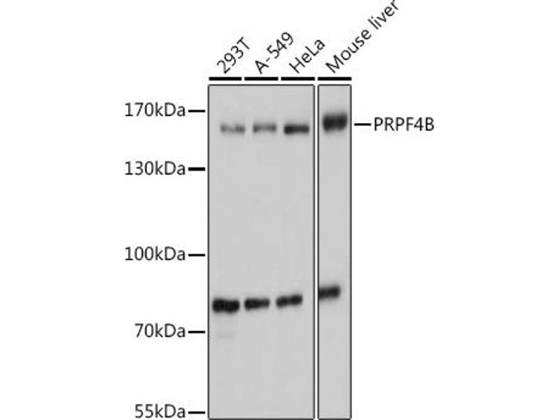 Der Kaninchen Polyklonal Anti-PRPF4B Antikörper wurde für WB validiert. Er ist geeignet, PRPF4B in Proben von Human zu detektieren.