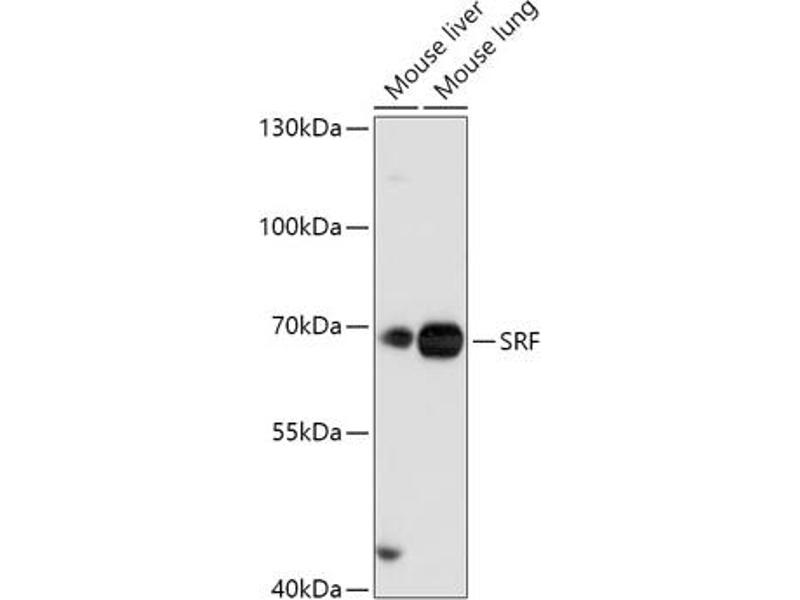 - This gene encodes a ubiquitous nuclear protein that stimulates both cell proliferation and differentiation. It is a member of the MADS (MCM1, Agamous, Deficiens, and SRF) box superfamily of transcription factors. This protein binds to the serum response element (SRE) in the promoter region of target genes. This protein regulates the activity of many immediate-early genes, for example c-fos, and thereby participates in cell cycle regulation, apoptosis, cell growth, and cell differentiation. This gene is the downstream target of many pathways, for example, the mitogen-activated protein kinase pathway (MAPK) that acts through the ternary complex factors (TCFs). Two transcript variants encoding different isoforms have been found for this gene.,SRF,MCM1,Epigenetics & Nuclear Signaling,Transcription Factors,Signal Transduction,MAPK-Erk Signaling Pathway,Cell Biology & Developmental Biology,Stem Cells,Cardiovascular,Heart,Cardiogenesis,SRF