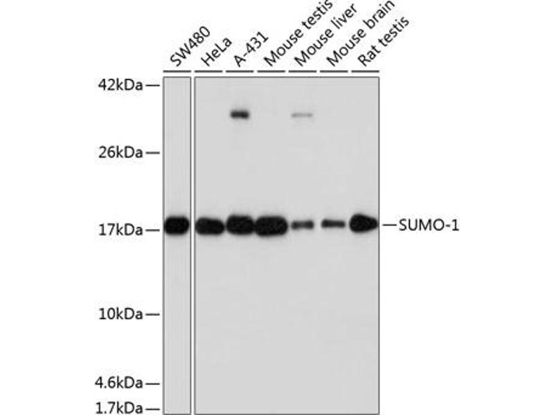 Der Kaninchen Monoklonal Anti-SUMO1-Antikörper wurde für WB, IF und IHC validiert. Er ist geeignet, SUMO1 in Proben von Human zu detektieren.