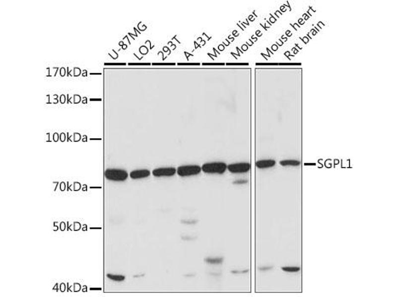 Der Kaninchen Polyklonal anti-SGPL1 Antikörper (ABIN7270533) detektiert spezifisch SGPL1 in WB.