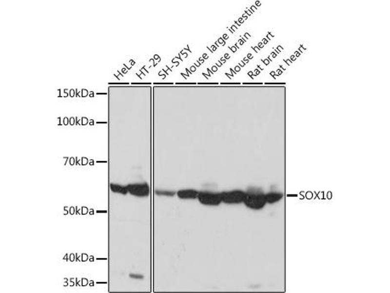 - This gene encodes a member of the SOX (SRY-related HMG-box) family of transcription factors involved in the regulation of embryonic development and in the determination of the cell fate. The encoded protein may act as a transcriptional activator after forming a protein complex with other proteins. This protein acts as a nucleocytoplasmic shuttle protein and is important for neural crest and peripheral nervous system development. Mutations in this gene are associated with Waardenburg-Shah and Waardenburg-Hirschsprung disease. [provided by RefSeq, Jul 2008],DOM, PCWH, WS2E, WS4, WS4C,Cell Biology & Developmental Biology,Cell Type Marker,Cell Type Marker_Neural Stem Cell marker,Epigenetics & Nuclear Signaling,Neuroscience,Stem Cells,Transcription Factors,SOX10