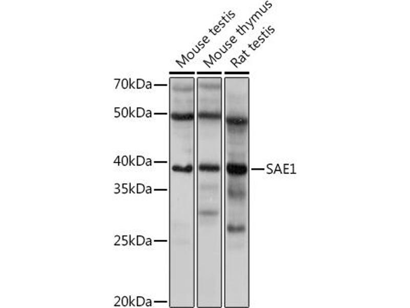 Posttranslational modification of proteins by the addition of the small protein SUMO (see SUMO1, MIM 601912), or sumoylation, regulates protein structure and intracellular localization. SAE1 and UBA2 (MIM 613295) form a heterodimer that functions as a SUMO-activating enzyme for the sumoylation of proteins (Okuma et al., 1999 [PubMed 9920803]).[supplied by OMIM, Mar 2010],AOS1, HSPC140, SUA1, UBLE1A,Cell Biology & Developmental Biology,Ubiquitin,Ubiquitin_Ubiquitin-Proteasome Signaling Pathway,SAE1