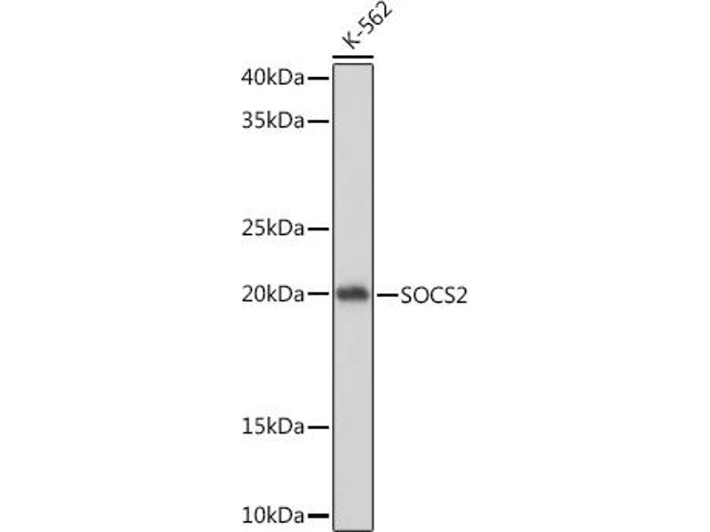 This gene encodes a member of the suppressor of cytokine signaling (SOCS) family. SOCS family members are cytokine-inducible negative regulators of cytokine receptor signaling via the Janus kinase/signal transducer and activation of transcription pathway (the JAK/STAT pathway). SOCS family proteins interact with major molecules of signaling complexes to block further signal transduction, in part, by proteasomal depletion of receptors or signal-transducing proteins via ubiquitination. The expression of this gene can be induced by a subset of cytokines, including erythropoietin, GM-CSF, IL10, interferon (IFN)-gamma and by cytokine receptors such as growth horomone receptor. The protein encoded by this gene interacts with the cytoplasmic domain of insulin-like growth factor-1 receptor (IGF1R) and is thought to be involved in the regulation of IGF1R mediated cell signaling. This gene has pseudogenes on chromosomes 20 and 22. Alternative splicing results in multiple transcript variants. [provided by RefSeq, Jul 2012],CIS2, Cish2, SOCS-2, SSI-2, SSI2, STATI2,Apoptosis,Cell Biology & Developmental Biology,Cell Intrinsic Innate Immunity Signaling Pathway,Cytokines,IL-6 Receptor Signaling Pathway,Immunology & Inflammation,Neuroscience,Signal Transduction,SOCS2