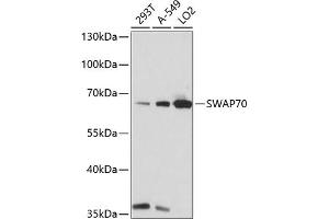 Phosphatidylinositol 3,4,5-trisphosphate-dependent guanine nucleotide exchange factor (GEF which, independently of RAS, transduces signals from tyrosine kinase receptors to RAC. It also mediates signaling of membrane ruffling. Regulates the actin cytoskeleton as an effector or adapter protein in response to agonist stimulated phosphatidylinositol (3,4-bisphosphate production and cell protrusion (By similarity.,SWAP70,HSPC321,SWAP-70,Signal Transduction,Immunology & Inflammation,Neuroscience,Calcium Signaling,SWAP70