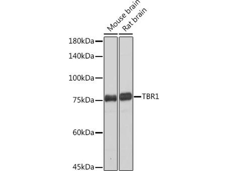 - This gene is a member of a conserved family of genes that share a common DNA-binding domain, the T-box. T-box genes encode transcription factors involved in the regulation of numerous developmental processes. In mouse, the ortholog of this gene is expressed in the cerebral cortex, hippocampus, amygdala and olfactory bulb and is thought to play an important role in neuronal migration and axonal projection. In mouse, the C-terminal region of this protein was found to be necessary and sufficient for association with the guanylate kinase domain of calcium/calmodulin-dependent serine protein kinase. [provided by RefSeq, Dec 2015],TBR-1, TES-56,Epigenetics & Nuclear Signaling,Neuroscience,Signal Transduction,Transcription Factors,TBR1