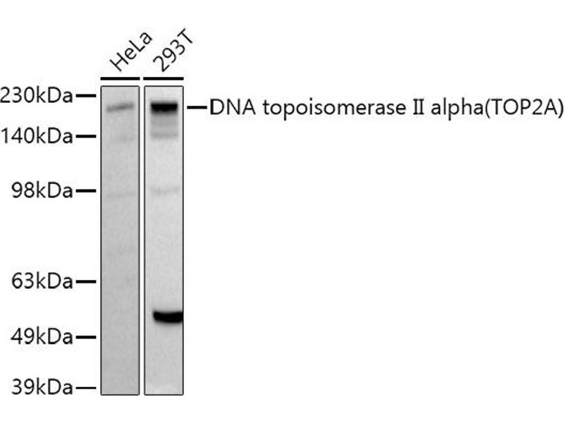 Der Kaninchen Polyklonal Anti-Topoisomerase II alpha Antikörper wurde für WB validiert. Er ist geeignet, Topoisomerase II alpha in Proben von Human zu detektieren.
