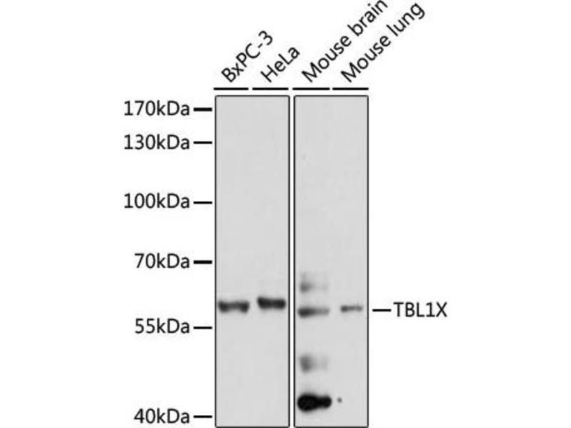 The protein encoded by this gene has sequence similarity with members of the WD40 repeat-containing protein family. The WD40 group is a large family of proteins, which appear to have a regulatory function. It is believed that the WD40 repeats mediate protein-protein interactions and members of the family are involved in signal transduction, RNA processing, gene regulation, vesicular trafficking, cytoskeletal assembly and may play a role in the control of cytotypic differentiation. This encoded protein is found as a subunit in corepressor SMRT (silencing mediator for retinoid and thyroid receptors) complex along with histone deacetylase 3 protein. This gene is located adjacent to the ocular albinism gene and it is thought to be involved in the pathogenesis of the ocular albinism with late-onset sensorineural deafness phenotype. Four transcript variants encoding two different isoforms have been found for this gene. This gene is highly similar to the Y chromosome TBL1Y gene.,TBL1X,EBI,SMAP55,TBL1,Epigenetics & Nuclear Signaling,Nuclear Receptor Signaling,Cancer,Endocrine & Metabolism,Lipid Metabolism,Endocrine and metabolic diseases,Diabetes,Metabolic disorders,Obesity,Neuroscience,TBL1X