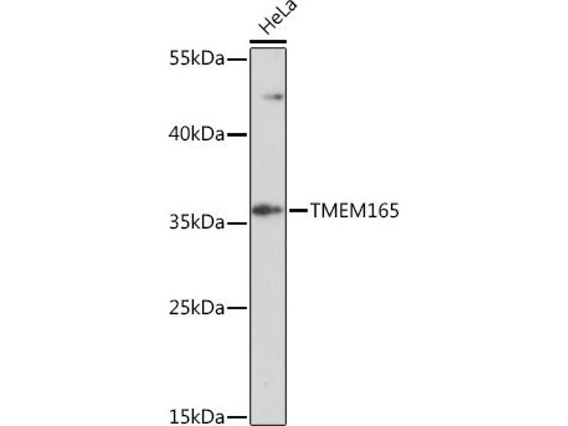 Der Kaninchen Polyklonal anti-TMEM165 Antikörper (ABIN7270956) detektiert spezifisch TMEM165 in WB.