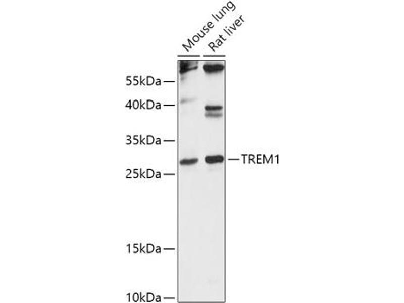 Der Kaninchen Polyklonal anti-TREM1 Antikörper (ABIN7270974) detektiert spezifisch TREM1 in WB.