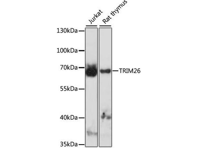 The protein encoded by this gene is a member of the tripartite motif (TRIM) family. The TRIM motif includes three zinc-binding domains, a RING, a B-box type 1 and a B-box type 2, and a coiled-coil region. The protein localizes to cytoplasmic bodies. Although the function of the protein is unknown, the RING domain suggests that the protein may have DNA-binding activity. The gene localizes to the major histocompatibility complex (MHC) class I region on chromosome 6. Alternatively spliced transcript variants encoding the same protein have been found for this gene.,TRIM26,AFP,RNF95,ZNF173,Epigenetics & Nuclear Signaling,TRIM26