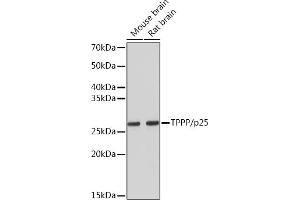Regulator of microtubule dynamics that plays a key role in myelination by promoting elongation of the myelin sheath. Acts as a microtubule nucleation factor in oligodendrocytes: specifically localizes to the postsynaptic Golgi apparatus region, also named Golgi outpost, and promotes microtubule nucleation, an important step for elongation of the myelin sheath. Required for both uniform polarized growth of distal microtubules as well as directing the branching of proximal processes. Shows magnesium-dependent GTPase activity, the role of the GTPase activity is unclear. In addition to microtubule nucleation activity, also involved in microtubule bundling and stabilization of existing microtubules, thereby maintaining the integrity of the microtubule network. Regulates microtubule dynamics by promoting tubulin acetylation: acts by inhibiting the tubulin deacetylase activity of HDAC6. Also regulates cell migration: phosphorylation by ROCK1 inhibits interaction with HDAC6, resulting in decreased acetylation of tubulin and increased cell motility. Plays a role in cell proliferation by regulating the G1/S-phase transition. Involved in astral microtubule organization and mitotic spindle orientation during early stage of mitosis, this process is regulated by phosphorylation by LIMK2.,TPPP/p25, TPPP1, p24, p25, p25alpha,Cell Biology & Developmental Biology,Cytoskeleton,Cytoskeleton_Microtubules,Signal Transduction,TPPP