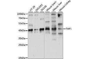This gene encodes twinfilin, an actin monomer-binding protein conserved from yeast to mammals. Studies of the mouse counterpart suggest that this protein may be an actin monomer-binding protein, and its localization to cortical G-actin-rich structures may be regulated by the small GTPase RAC1.,TWF1,A6,PTK9,Signal Transduction,Cell Biology & Developmental Biology,Cytoskeleton,Microfilaments,TWF1