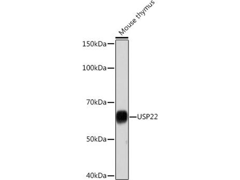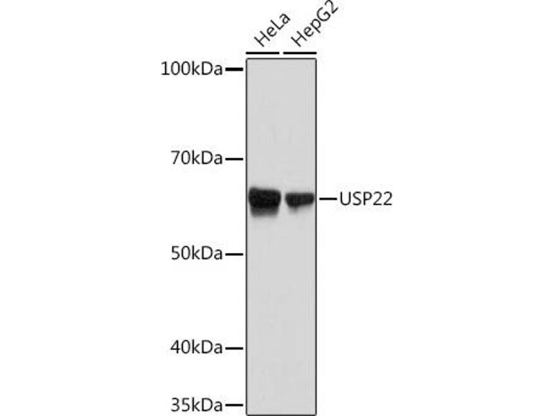 Der Kaninchen Monoklonal Anti-USP22 Antikörper wurde für WB validiert. Er ist geeignet, USP22 in Proben von Human zu detektieren.
