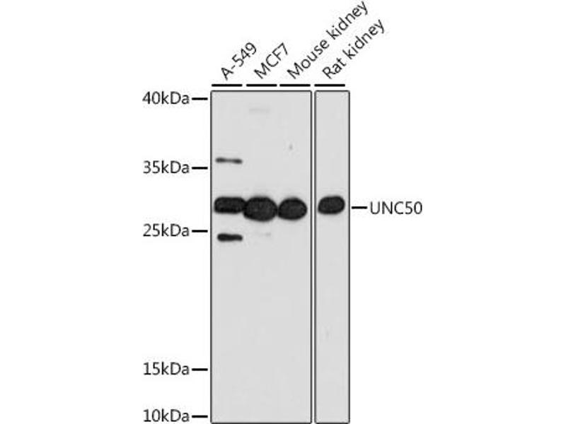 - A synthetic peptide corresponding to a sequence within amino acids 1-100 of human UNC50 (NP_054763.2).