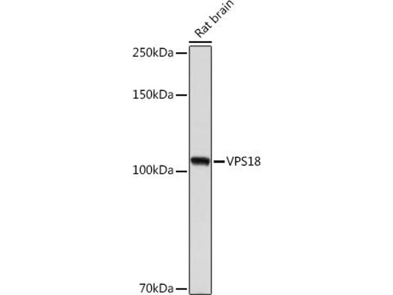 Der Kaninchen Monoklonal anti-VPS18 Antikörper (ABIN7271274) detektiert spezifisch VPS18 in WB.