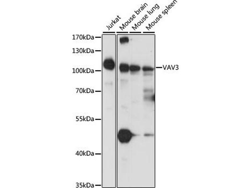 This gene is a member of the VAV gene family. The VAV proteins are guanine nucleotide exchange factors (GEFs) for Rho family GTPases that activate pathways leading to actin cytoskeletal rearrangements and transcriptional alterations. This gene product acts as a GEF preferentially for RhoG, RhoA, and to a lesser extent, RAC1, and it associates maximally with the nucleotide-free states of these GTPases. Alternatively spliced transcript variants encoding different isoforms have been described for this gene.,VAV3,Cancer,Signal Transduction,G protein signaling,Signal Transduction,Cell Biology & Developmental Biology,Cell Cycle,Cytoskeleton,Actins,Immunology & Inflammation,B Cell Receptor Signaling Pathway,T Cell Receptor Signaling Pathway,VAV3