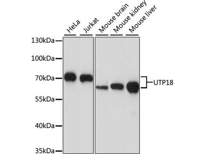 Dieser Kaninchen Polyklonal Antikörper detektiert spezifisch UTP18 in WB. Es zeigt Reaktivität gegenüber Proben von Human.