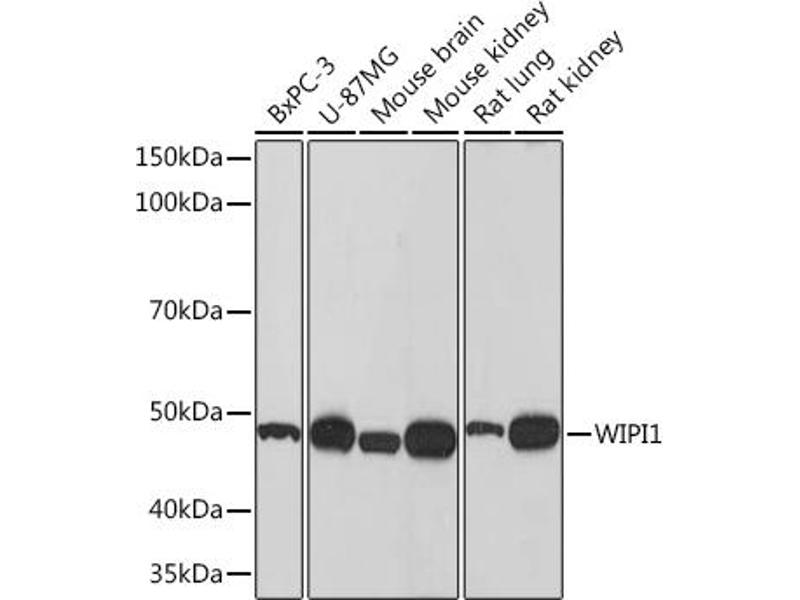 Der Kaninchen Monoklonal anti-WIPI1 Antikörper wird verwendet zum Nachweis von WIPI1 in Proben von Human. Er wurde validiert für WB.