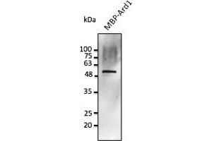 Using the recombinant ARD1 gives a positive signal by Western blot. Due to high homology it is likely to recognise heliomycin