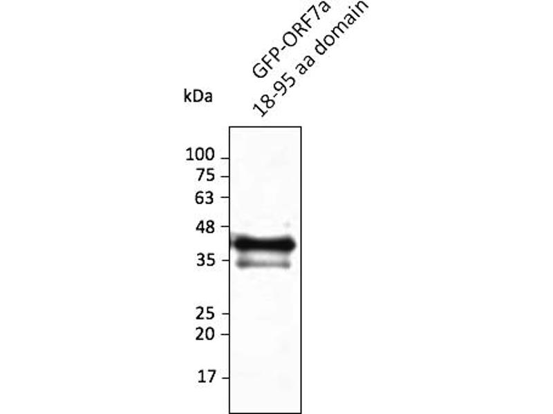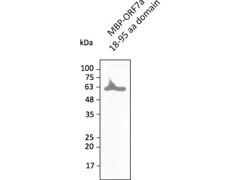 - Affinity purified recombinant fusion protein ORF7a (residues 18 to 95) produced in E. coli.