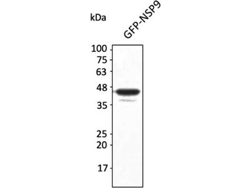 - Affinity purified recombinant fusion protein Nsp9 produced in E. coli.