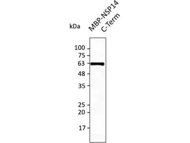 - Affinity purified recombinant fusion protein using the C-terminal of Nsp14 (residues 380 to stop) and produced in E. coli.