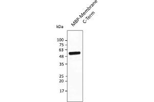 - Affinity purified recombinant fusion protein using the internal sequence of Membrane protein (residues 150 to 215) and produced in E. coli.