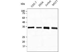 Detects a band of 37 kDa by Western blot.