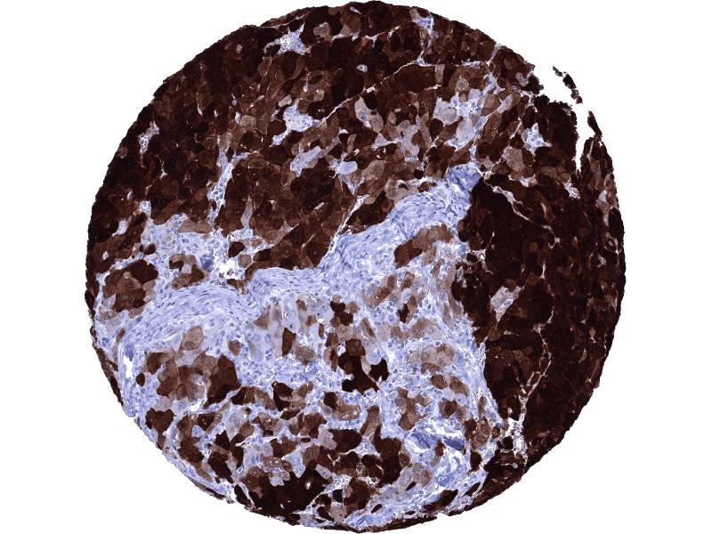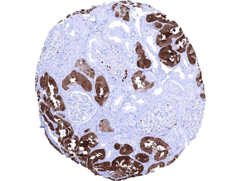 Positive Control: Kidney: A strong cytoplasmic FABP1 immunostaining should be seen in cells of the proximal tubule while other cell types remain negative or display only a faint staining.