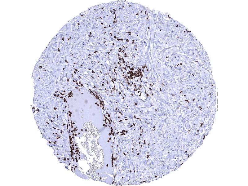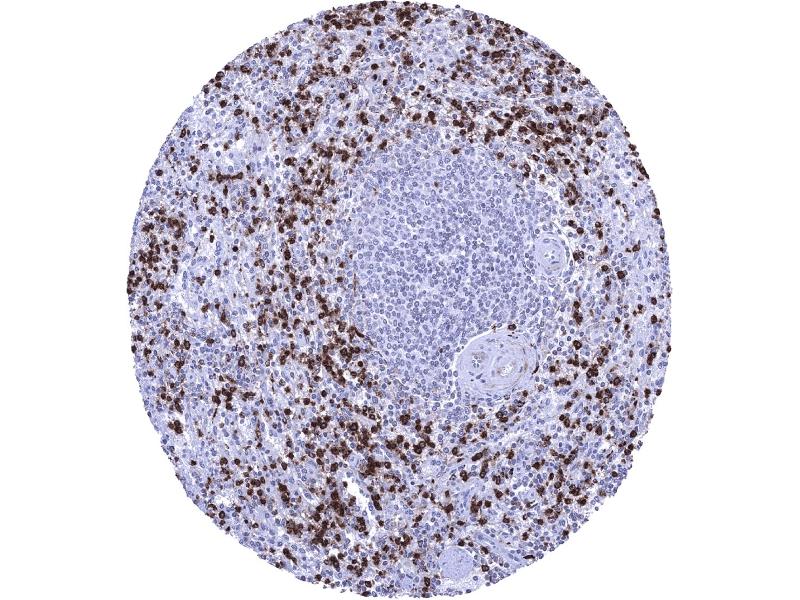 Positive Control: Spleen: Numerous granulocytes with strong MPO staining should be seen within the red pulp of the spleen.