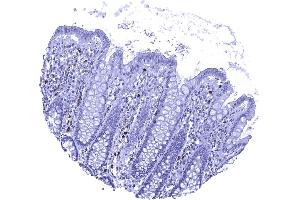 Negative Control: Colon: MPO immunostaining should be absent in all epithelial cells of the colon while MPO positive granulocytes may be seen within capillaries or in the stroma of the lamina propria.
