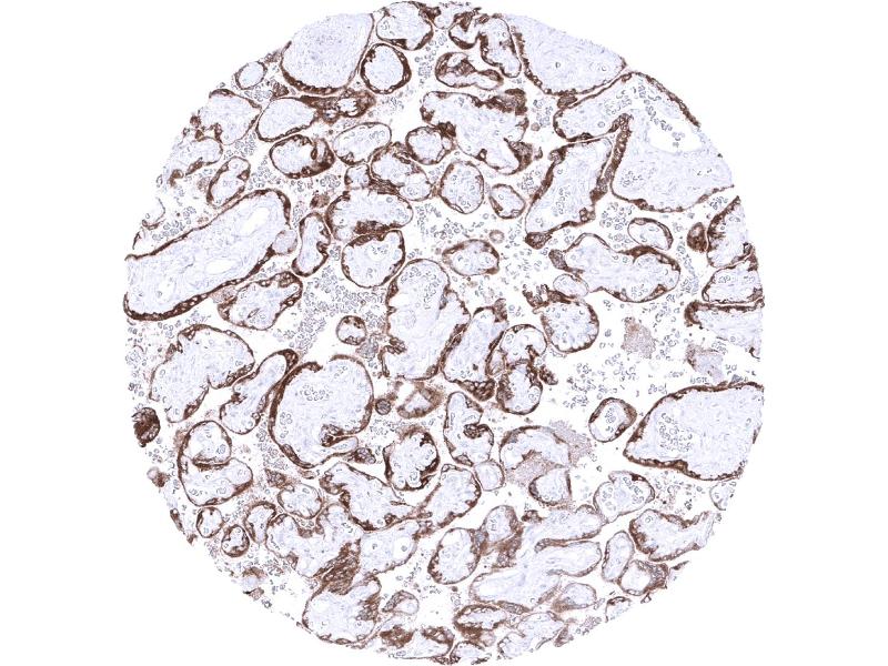 Positive Control: Placenta: Trophoplast and chorion cells should show a strong cytoplasmic papp-A staining.