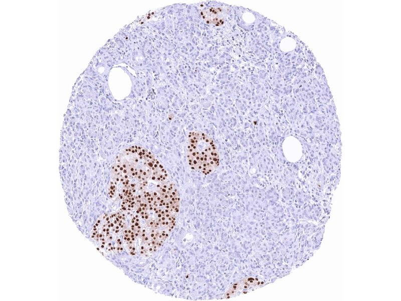 Positive Control: Pancreas: A strong PAX6 positivity should be seen in the cells of islets of Langerhans.