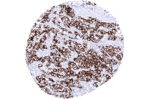 Positive Control: Placenta (mature): A strong membranous and cytoplasmic staining of cytotrophoblast and syncytiotrophoblast must be seen.