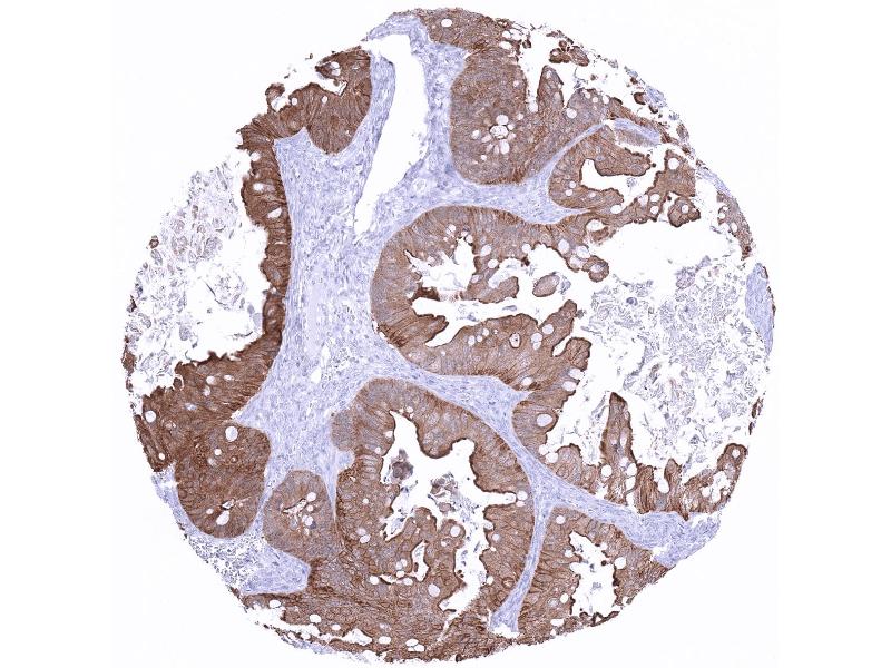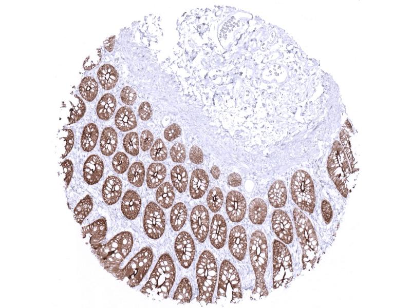 Positive Control: Colon: A moderate to strong villin staining with predominance of the apical membrane should be seen in all epithelial cells. Liver: A weak to moderate staining of the apical pole of hepatocytes should be seen.