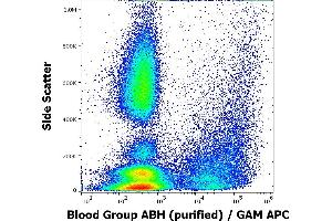 The mouse monoclonal antibody HE-10 agglutinates erythrocytes of group A, and is excellent as a tumour marker in patients of blood group B and 0. It does not agglutinate erythrocytes of group B and 0. Study with specific oligosaccharides showed that the antibody HE-10 reacts with A and H antigens with chain types 3 and 4 and it does not react with A disaccharide, A trisaccharide, A type 1, A type 2, ALeb. The antibody HE-10 does not react with normal tissue sections of donors with blood group B and 0 but it reacts specifically with malignant tissues.