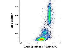 The mouse monoclonal antibody HC3aRZ8 recognizes an extracellular epitope of C3aR, a transmembrane chemotactic receptor for C3a anaphylatoxin.