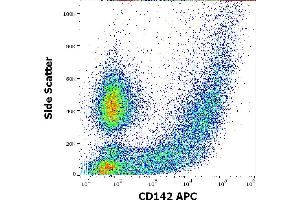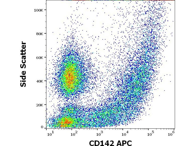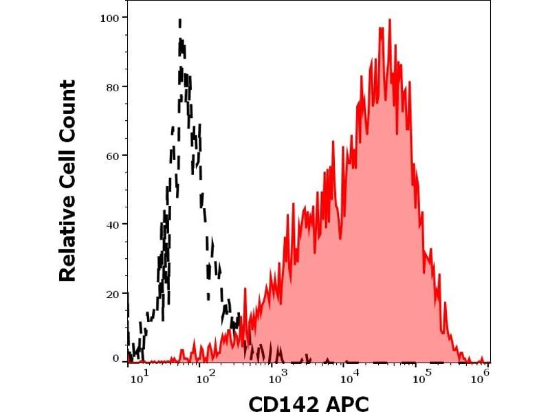 The mouse monoclonal antibody HTF-1, also known as HTF1-7B8, recognizes an extracellular epitope of CD142 (tissue factor, coagulation factor III), a type I glycoprotein expressed on endothelial cells, monocytes, macrophages, and platelets upon induction by inflammatory mediators, and expressed constitutively by some tumors, the vasculature, placenta, kidney, and central nervous system.