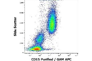 CD15 (Lewis x), also known as stage specific embryonic antigen-1 (SSEA-1) is a trisacharide determinant (3-fucosyl-N-acetyllactosamine) expressed on several glycolipids, glycoproteins and proteoglycans of various cell types, e.g. granulocytes, mast cells, monocytes, macrophages, cells of gastric mucosa, nervous system or various tumour cells. There are several structural relatives of Lewis x, e.g. sialyl-Lewis x or sulphated Lewis x. Cells with high surface expression of Le(x) antigen exhibit strong self-aggregation, based on calcium-dependent Le(x)-Le(x) interaction. This process is involved for example in embryo compaction or in autoaggregation of teratocarcinoma cells. Sialyl-Le(x) and its isomer sialyl-Le(a) are ligands of selectins. CD15 expression has been extensively used to confirm diagnosis of Hodgkin´s disease.,Lewis x Blood Group antigen, Le(x), SSEA-1, 3-fucosyl-N-acetyllactosamine