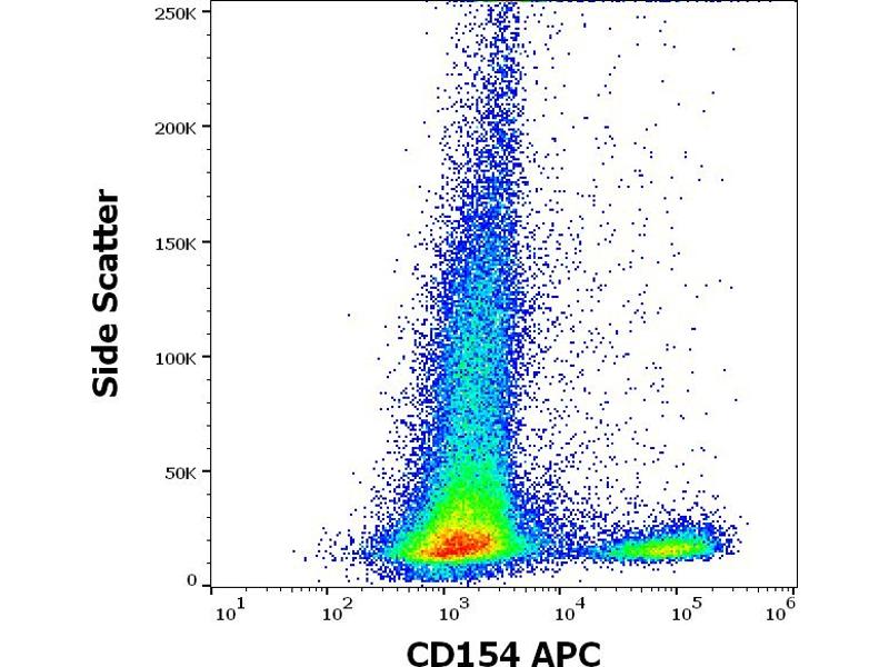 The mouse monoclonal antibody 24-31 detects an extracellular epitope of CD154 / CD40L (CD40-ligand), a 39 kDa cell surface type II glycoprotein expressed predominantly on activated CD4+ lymphocytes.