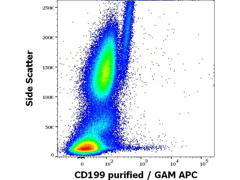 C-C motif chemokine receptor 9,CD199 (CCR9) is a G-protein-coupled 7 TM chemokine receptor for TECK (SCYA25) chemokine. It is expressed strongly in thymus, at lower level in bone marrow and spleen, as well as on a subset of memory T cells specialized for mucosal homing. CD199 appears to confer homing properties to the small intestine on memory T cells. On the other hand it functions as a coreceptor for HIV-1.,GPR-9-6, GPR28
