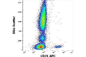 Complement C3d receptor 2,CD21 (complement receptor 2, CR2) binds C3 complement fragments, especially its breakdown fragments, which remain covalently attached to complement activating surfaces or antigen. CD21 has important roles in uptake and retention of immunocomplexes, survival of memory B cells and in development and maintenance of the humoral response to T-dependent antigens. CD21 also serves as a key receptor for Epstein-Barr virus binding and is involved in targeting prions to folicular dendritic cells and expediting neuroinvasion following peripheral exposure to prions. A soluble form of the CD21 (sCD21) is shed from the lymphocyte surface and retains its ability to bind respective ligands.,CR2, C3DR2, CVID7, SLEB9