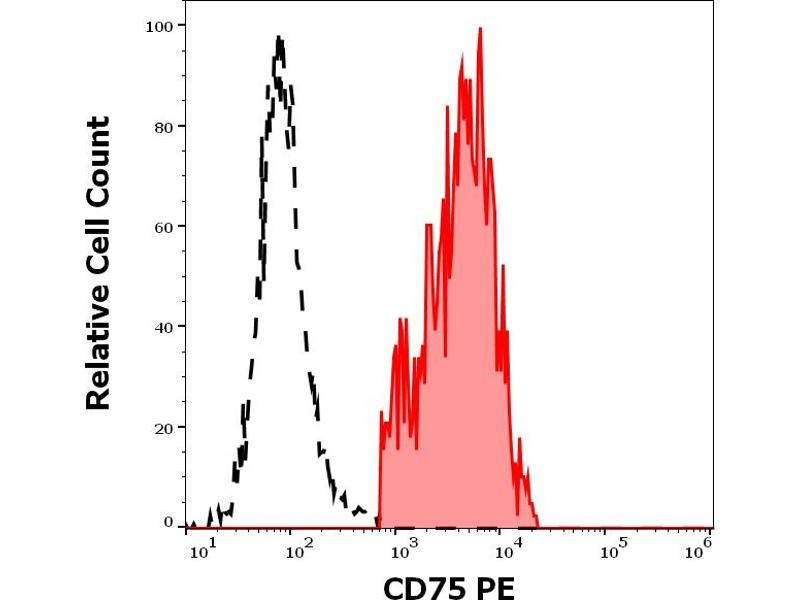The mouse monoclonal antibody LN1 recognizes CD75, a lactosamine structure present mainly on the surface of B cell types.