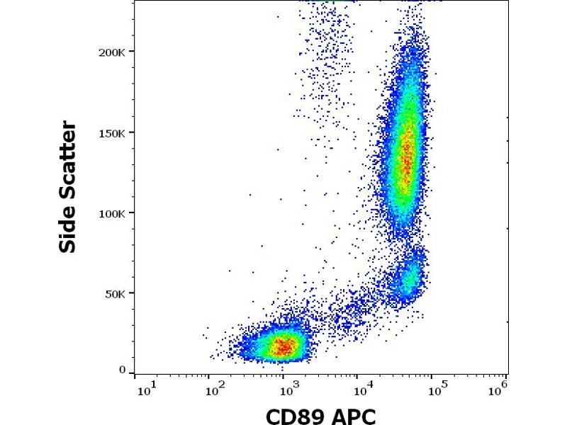 The mouse monoclonal antibody A59 recognizes an extracellular epitope of CD89, a 55-100 kDa glycoprotein serving as a receptor for IgA and expressed mainly on granulocytes, monocytes and macrophages.