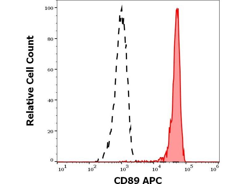 Fc fragment of IgA receptor,CD89 (Fc-alpha-R) is a type I transmembrane glycoprotein serving as a receptor for IgA. Soluble CD89 is detectable in serum and retains its IgA binding capacity. For signal transduction the association with FcR gamma chain homodimers is needed. CD89 is expressed on granulocytes, monocytes, macrophages, dendritic cells and myeloid cell lines. Its expression is upregulated in presence of IgA immune complexes, stimulators (such as LPS, PMA), TNF alpha, IL1 beta or GM-CSF, and it is downregulated in presence of TGF beta and suramin. Binding of IgA-opsonized targets to CD89 leads to phagocytic and cytotoxic processes of the immunologic defense.,FcalphaRI, FcAR, CTB-61M7.2