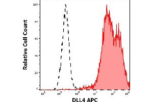 The mouse monoclonal antibody MHD4-46 recognizes the extracellular domain of DLL4 (Delta-like ligand 4), a type I transmembrane protein which plays an important role in vascular development.
